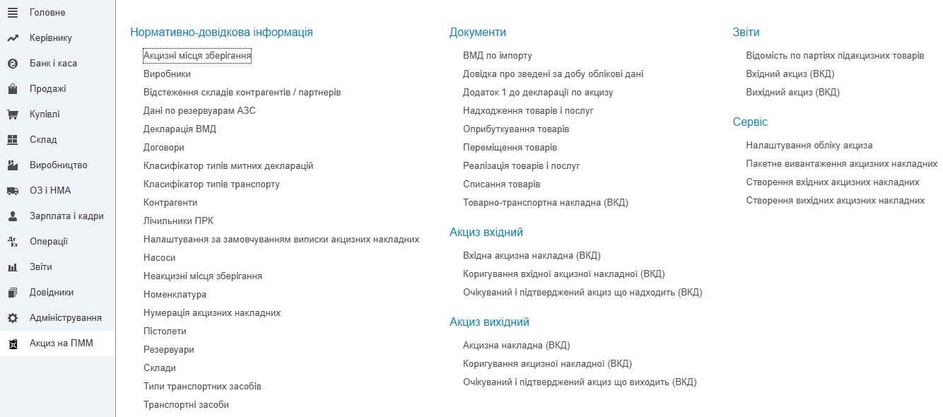 - відстежувати рух підакцизних товарів; - прогнозувати об’єм акцизного реєстраційного ліміту; - вести облік густини пального для перерахунку тон (кілограм) в літри; - бачити кількість пального, що надійшло та реалізовано в літрах при температурі 15°C; - відображати