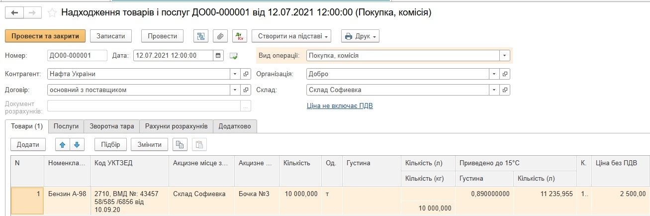 акцизні накладні на підставі надходження, реалізації та переміщення