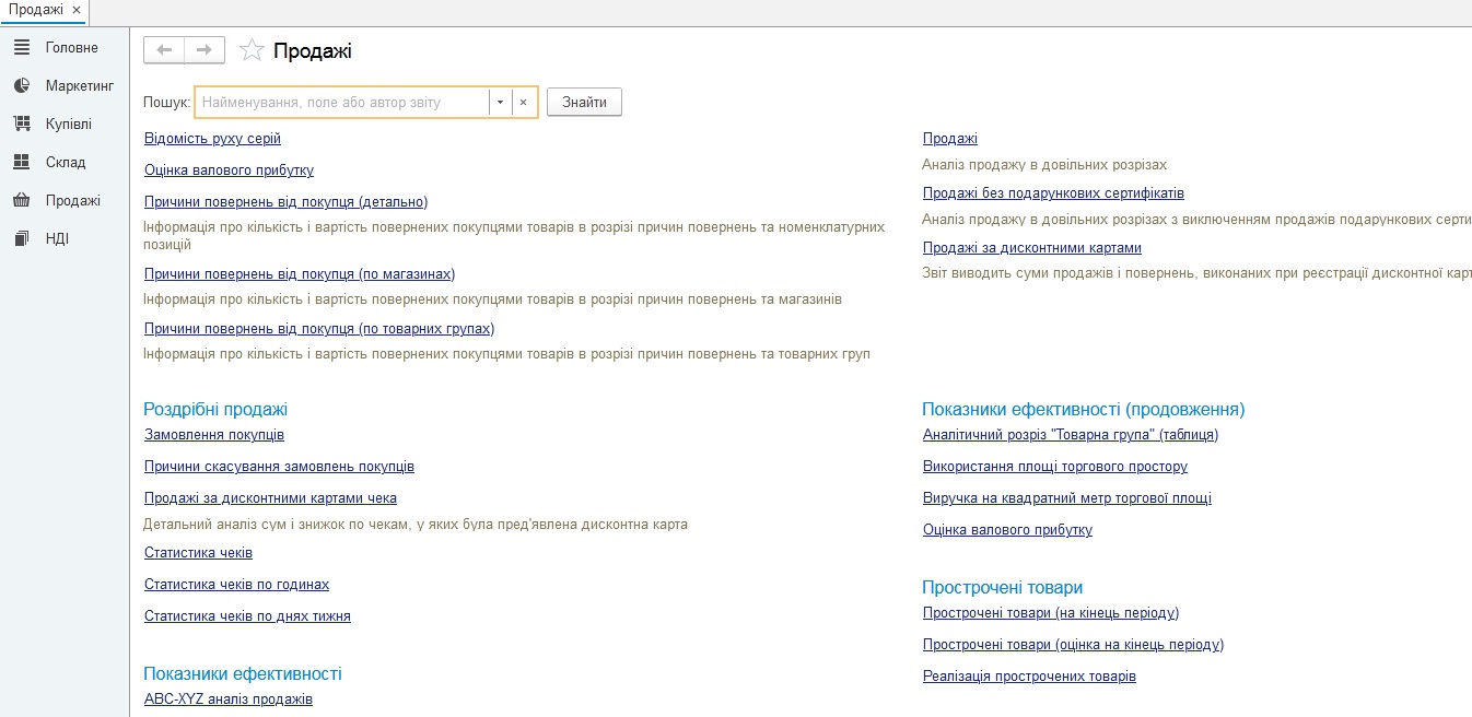 Роздрібна торгівля" формуються аналітичні звіти з різним рівнем